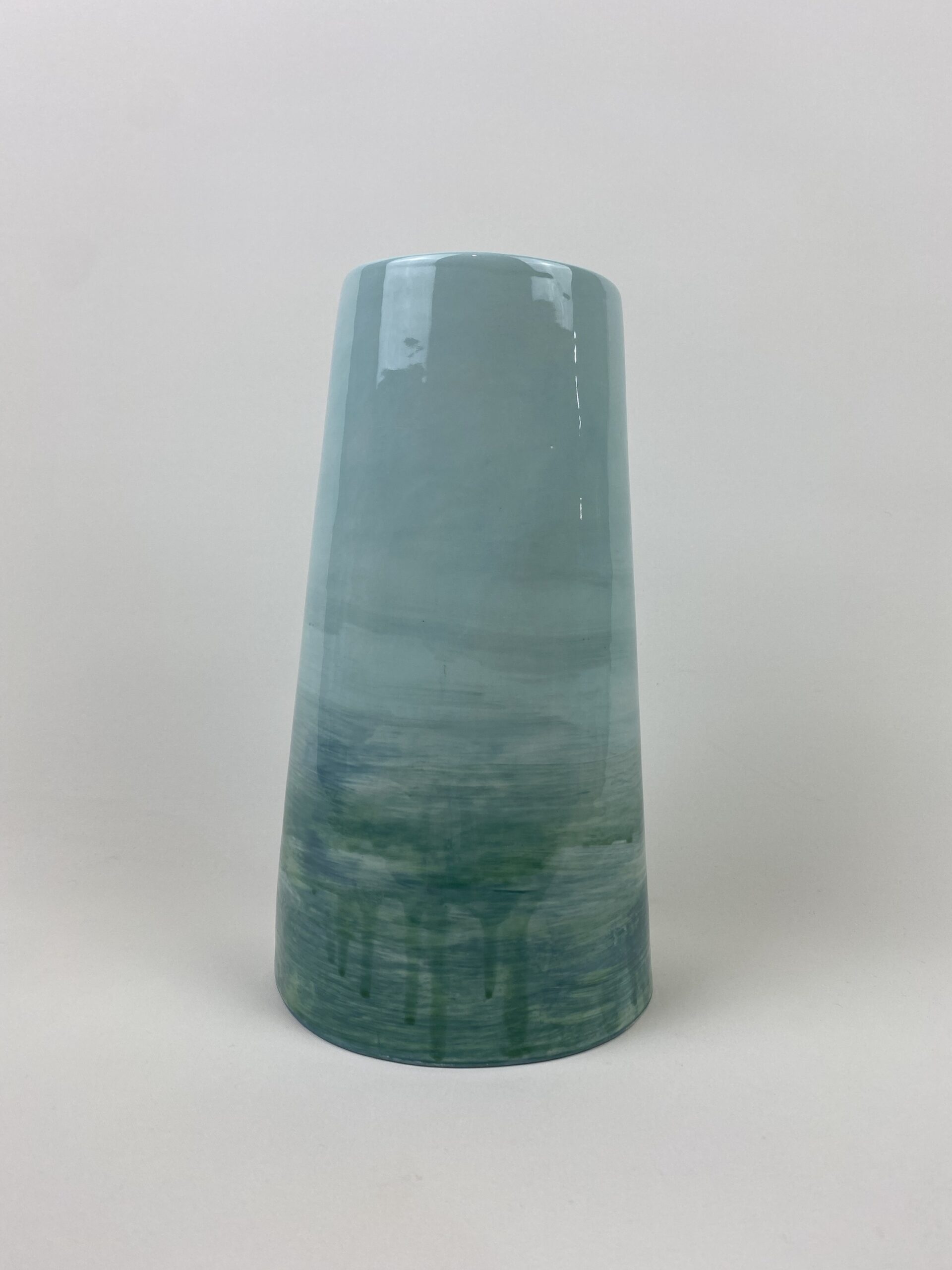 For this design I used white clay, I used the slab building method to make it and decorated it using coloured slips, with a glossy glaze to finish. I painted on the design loosely with a brush, layering colours to give a rich and diverse finish.