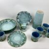 Handmade using white or terracotta earthenware clay, decorated with coloured engobe slips and oxides and finished using a glossy glaze. For purely decorative pieces areas may be left unglazed and finished with a wax. I work in small batches mixing the colours as I go, therefore sets may vary slightly.